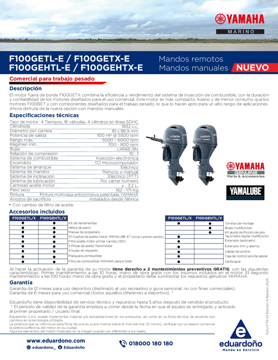 / MOTOR F.B FT100GEHTL 4T LARGO / BRAZO / HELICE ACERO