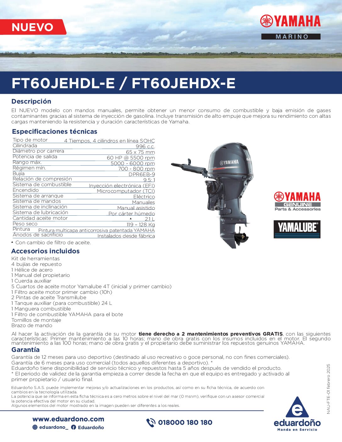 MOTOR F.B FT60JEHDL 4T LARGO / BRAZO / HELICE ACERO